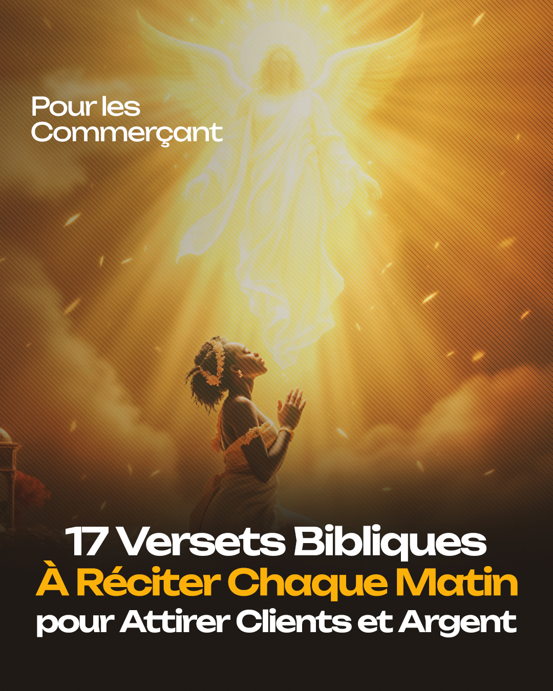 👉 Télécharge dès maintenant “17 Versets Bibliques à Réciter Chaque Matin pour Attirer Clients et Argent dans Ton Commerce” et commence dès demain à déclarer ta prospérité avec puissance et foi.